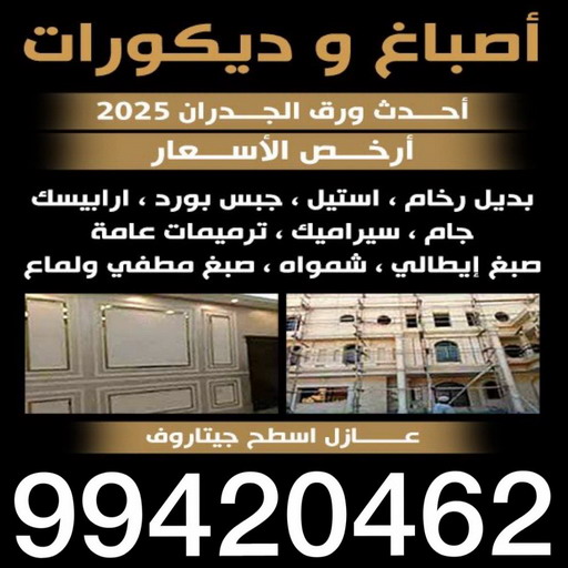 صباغ خشب بالكويتإذا كنت تشعر بالملل من الأثاث الخاص بك والعيوب الموجود به ولا تمتلك التكاليف الكافية التي تمكنك من شراء اثاث، صباغ خشب بالكويت قادر على تغير شكل الأثاث الخاص بك وجعله جديد مرة أخرى حيث أنه خبير في تغير شكل الأثاث من خلال الدهانات بالإضافة إلى أنه يقوم أيضا بمعالجة أخشاب الأبواب والشبابيك من خلال الأصباغ الخاصة بذلك وجعلها بشكل أفضل كثيراّ مما يتوقع العميل هدفنا هو تقديم أفضل خدمة بأقل التكاليف الممكنه للعميل.صباغ ابواب خشب الكويت هو الحل الامثل لظهور المكان الخاص بك حيث أن جميع الاماكن والمباني بها أبواب والأبواب لا تقل أهمية عن الجدران حيث أن صباغة الأبواب تضيف فخامة ورقي للمكان لكن لابد من اختيار الأصباغ الخاصة بها بإحترافية من خلال التعامل مع صباغ في الكويت الاكثر كفاءة وخبرة في هذا المجال.صباغ جدران الكويتالمطابخ والحمامات الحديثة الآن تعتمد على أصباغ جديدة مقاومة للرطوبة بجانب السيراميك، وهنا تعتبر الأصباغ عامل حماية بالإضافة إلى أنها أساس ديكور راقي لذا لابد من اختيار الأصباغ والألوان بعناية شديدة للحصول على الخدمة بالشكل الذي يدور في مخيلتك، صباغ جدران الكويت هو أساس نجاح عمليات الصباغة بالشكل الذي يروق لك.صباغ رخيص بالكويتهل تبحث عن صباغ رخيص بالكويت وتكون جميع أعماله مميزة ويكون لديه المهارة التى تجعله قادر على أختيار الألوان التى تتناسب مع ذوقك وباقي أفراد الأسرة فالان عزيزي لا تحتاج أن تضيع وقتك أكثر من هذا حيث ان صباغ الكويت من أرخص الصباغين بالدولة جميع الخدمات التى يقوم بها في غاية الجمال والروعة، كما أنه يمتاز بالانضباط في المواعيد التي يحددها مع العملاء مسبقاً وينتهي من العمل على المكان المكلف به في الوقت المحدد وأحياناً قبل ذلك.ورق جدران رخيص بالكويتكل منا يريد أن يحصل على منزل يتمتع بالحيوية والجمال والسحر يجلب له الراحة لذلك يلجأ الجميع الآن إلي تركيب ورق جدران الذي يتمتع بشكلة الرائع والذي يضفي على المكان فخامة وأناقة ليس لها مثيل فإن كنت تبحث عن ورق جدران رخيص بالكويت نحن نوفر لكم الكثير من الأشكال الجذابة والرائعة التى تنال إعجابكم، نحن نعمل على توفير كافة التصميمات الحديثة لكى نتمكن من تلبية طلباتكم على أكمل وجه ممكن.تقدم شركتنا كافة الخدمات الخاصة بالديكورات فان كنت تريد أن تحصل على ارقام صباغين بالكويت عليك بالإتصال بنا من خلال الأرقام التي نوضحها لكم،لدينا صباغين من كافة الجنسيات أختار عزيزي الجنسية التى تفضل أن تتعاقد معها وأترك مفتاح منزلك معنا ونحن علينا تنفيذ المهمة وتأكد أننا من الشركات الرائدة نتمتع بالمهارة والإبداع وقادرين على جعل منزلك يشبه لوحة فنية.صباغين الكويتتعد الأصباغ من المواد المستخدمة لإظهار الأسطح بشكل جمالي مميز فهي تضفي رونق للمنازل وغيرها من الأماكن، تتعدد أنواع الأصباغ منها مشتق من الماء ومنها مشتق من الزيوت، يأخذ صباغين الكويت العديد من الإحتياطات قبل عملية التنفيذ وهي :